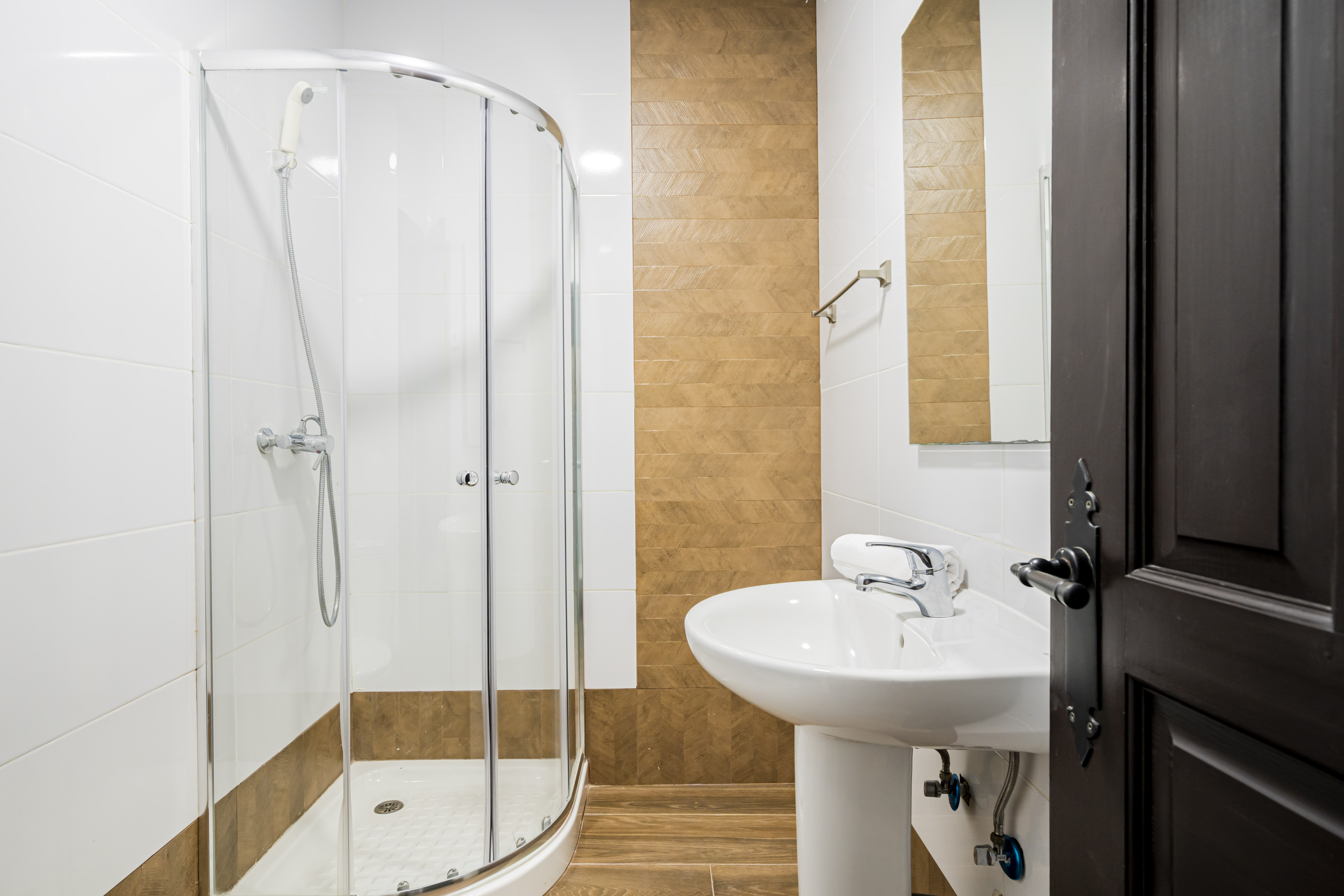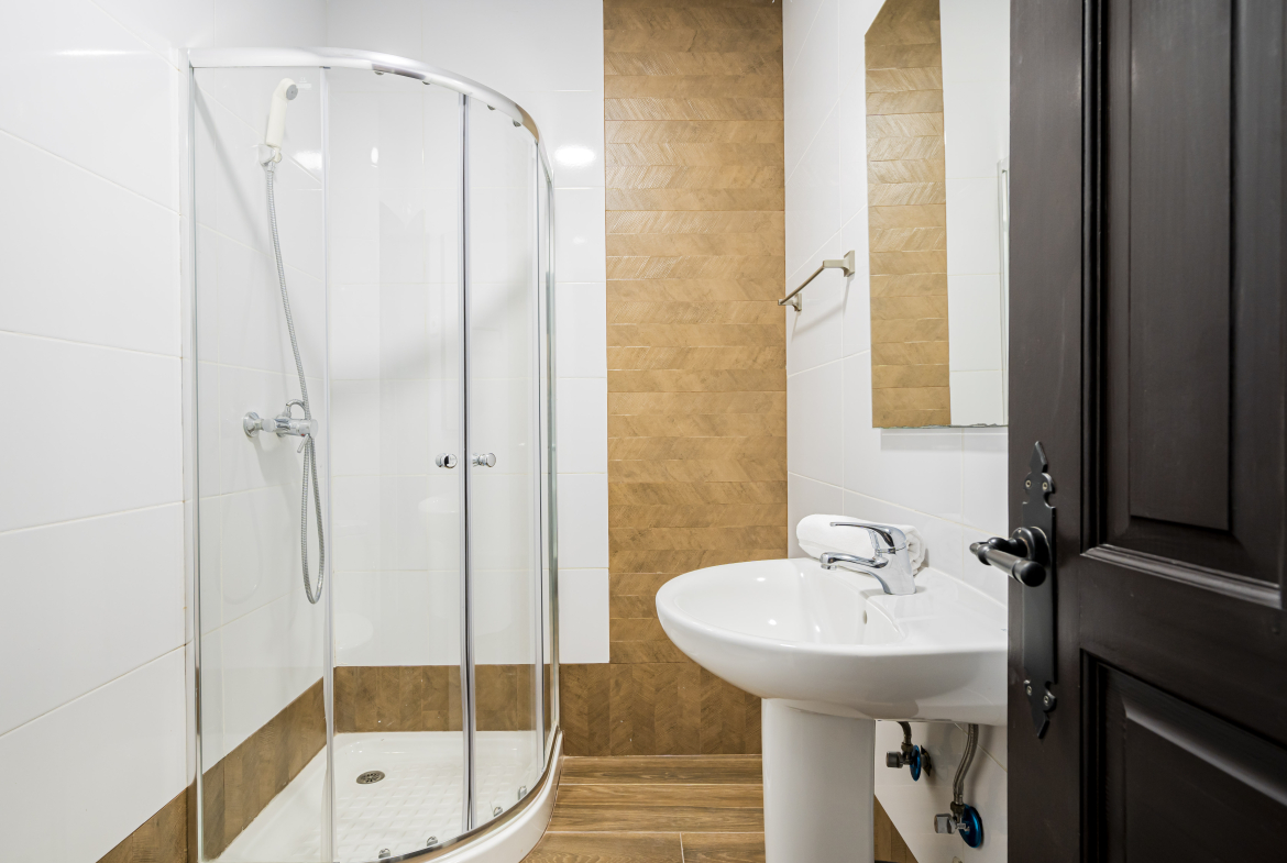 3 habitaciones individuales, cada una de ellas con su propio baño y una zona común con cocina y sala de estar.