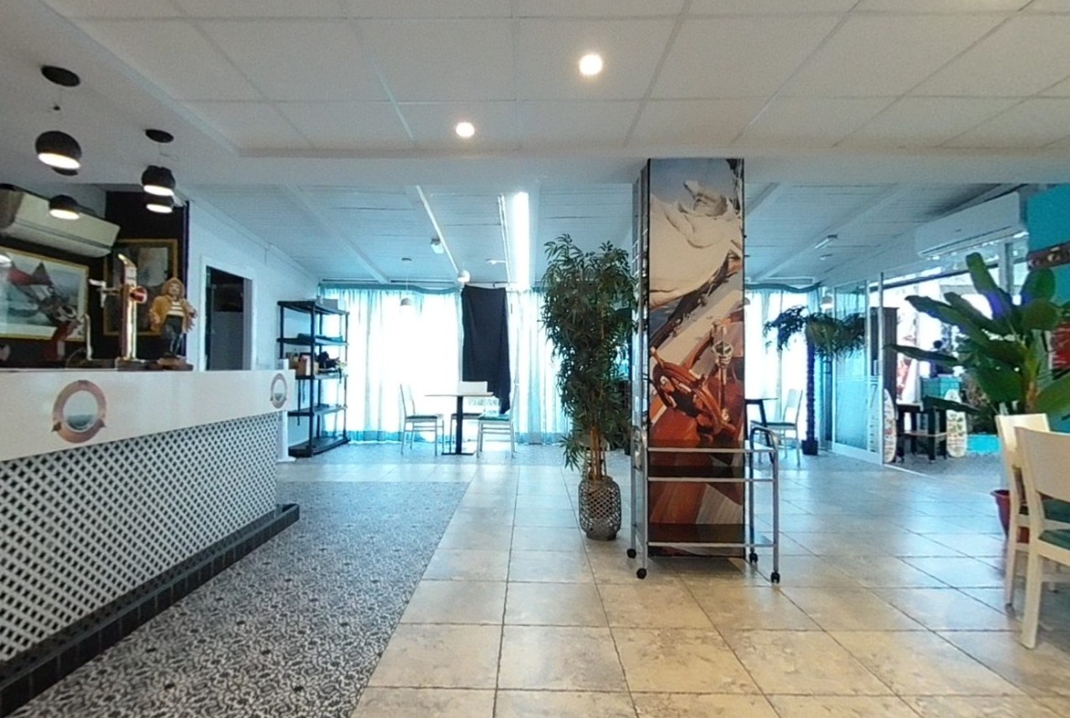 Ubicado en Gandía playa, el local tiene un enclave privilegiado en pleno barrio marítimo y rodeado de otros locales comerciales como restaurantes, hoteles y supermercados. El local ha sido renovado en múltiples ocasiones, recientemente en 2024 con una reforma de la terraza de más de 20 mil euros y una nueva instalación eléctrica.