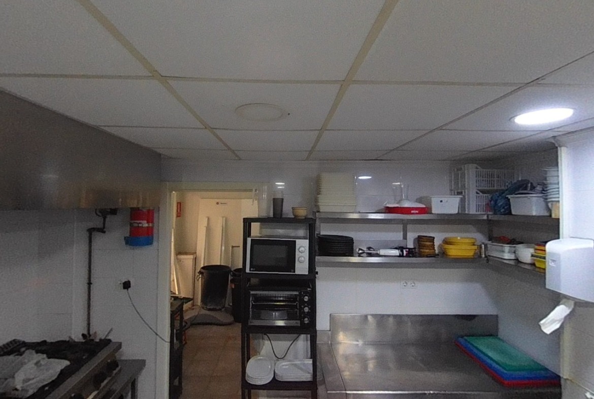 Está totalmente acondicionado para la actividad de restauración que se realiza actualmente, dispone de salida de humos, almacén, cámaras frigoríficas, plancha, horno y cocina industriales, 3 baños, varios aires acondicionados. Dispone de OCA oficial de la instalación eléctrica y el equivalente del gas, con indicadores de emergencia, completamente habilitado y en regla, con licencia vigente transferible recién renovada incluida en el precio.